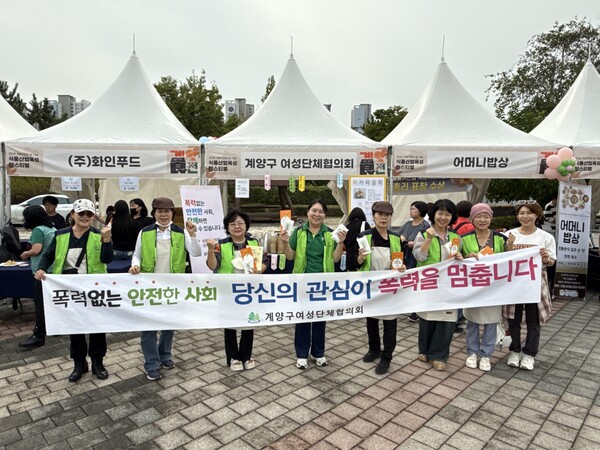 인천 계양구여성단체협의회는 지난 2일 인천계양체육관 야외부스에서 ‘폭력예방·여성안심환경 조성 캠페인’을 실시했다.