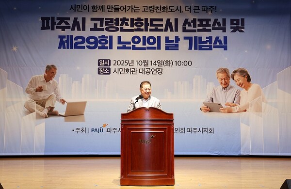 파주시는 지난 14일 파주시민회관 대공연장에서 ‘제29회 노인의 날 기념행사 및 세계보건기구(WHO) 인증 고령친화도시 선포식’을 성황리에 개최하고, 고령사회에 대응하는 파주시 복지정책 방향과 세대 간 공감의 문화를 확산하기 위한 뜻깊은 자리를 마련했다.