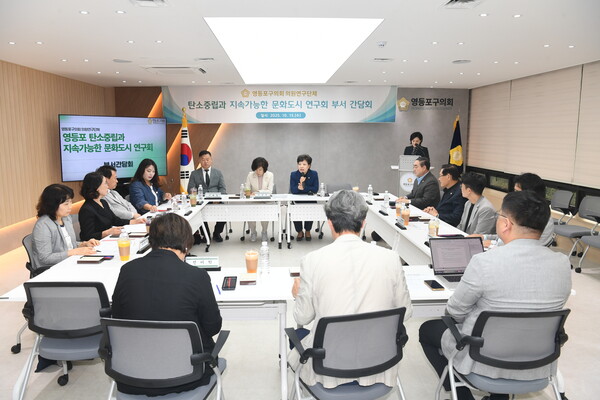 영등포구의회 의원연구단체 ‘탄소 중립과 지속 가능한 문화도시 연구회’는 지난 15일 영등포구의회 다목적회의실에서 관련 부서와 간담회를 열고 탄소중립과 문화도시 조성을 위한 실천 방안을 논의했다.