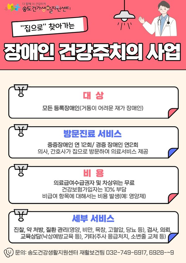 연수구 송도건강생활지원센터는 인천지역장애인보건의료센터와 연계해 지역 장애인의 건강관리를 위한 ‘장애인 건강주치의 서비스’를 운영하고 있다.