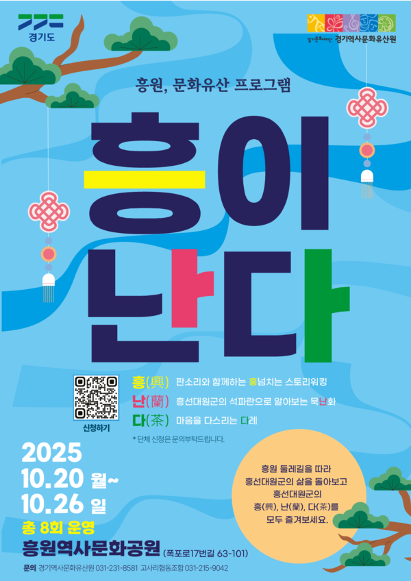 경기도와 경기문화재단은 오는 10월 20일부터 26일까지 흥선대원군의 묘소인 흥원(남양주시 화도읍 폭포로17번길 63-101)에서 문화유산 프로그램 ‘흥이난다’를 개최한다.