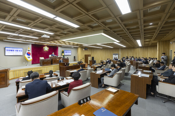 개회사에서 박성호 의장은 임시회 주요 안건인 ‘2025년도 행정사무감사 계획서 승인 건’에 대해 “행정사무감사를 통해 구정의 잘못된 관행을 바로잡고 구민의 요구에 부응하는 발전적 방향을 제시해야 한다”라며 의원들의 철저한 준비를 당부했다.