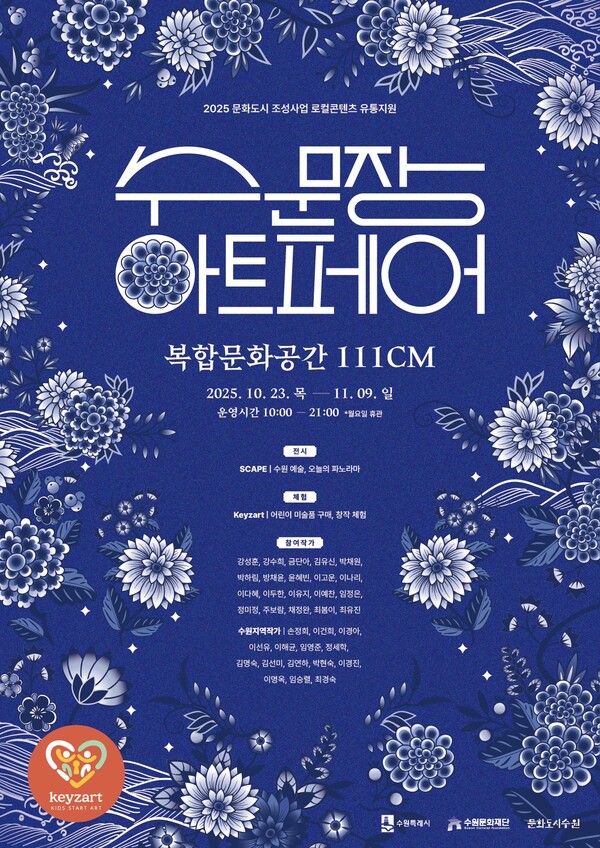 수원문화재단은 2025 문화도시 조성사업 로컬콘텐츠 유통지원 ‘수문장 아트페어’를 오는 10월 23일부터 11월 9일까지 18일간 복합문화공간 111CM에서 개최한다.