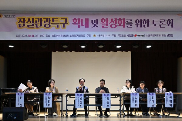 서울특별시의회 도시안전건설위원회와 예산결산특별위원회에서 의정활동을 하고 있는 남창진 의원(국민의힘, 송파2)은 21일 송파여성문화회관 소강당에서 '잠실관광특구 확대 및 활성화를 위한 토론회'를 개최하여 관광 전문가, 서울시, 송파구, 지역 상인과 주민들의 다양한 의견을 수렴하고 도약을 위한 계기를 만들었다.