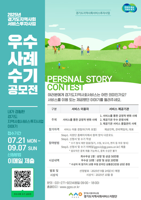 경기도사회서비스원 지역사회서비스지원단은 ‘2025년 경기도지역사회서비스투자사업 우수사례 공모전’을 개최하고 '정신건강토탈케어서비스'를 통해 일상을 회복한 이용자 사례를 최우수상으로 선정했다.