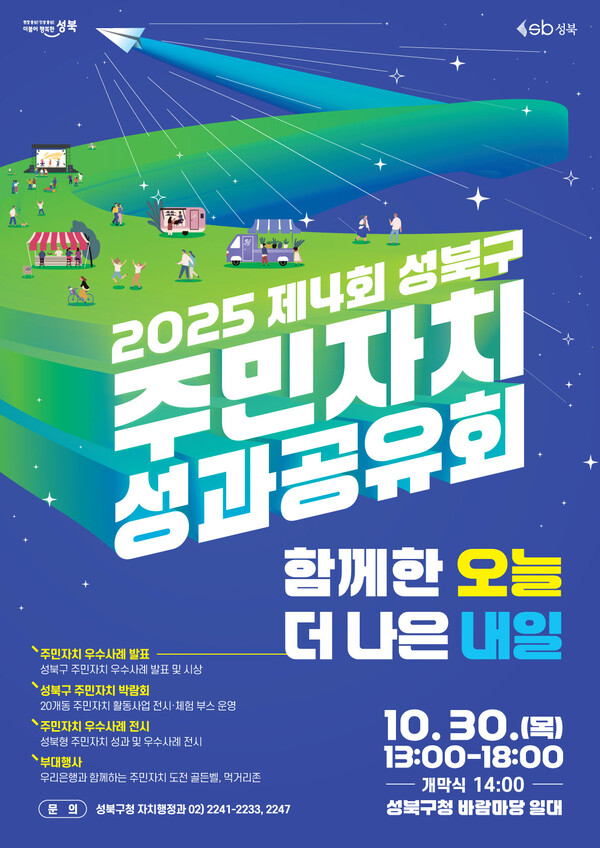 성북구가 오는 30일 지역 주민들과 함께 1년간의 주민자치 활동 성과를 공유하고 주민화합을 도모하는 ‘2025 제4회 성북구 주민자치성과공유회’를 개최한다고 밝혔다.