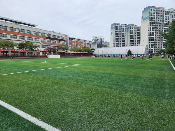 올해 9월 완공된 공사는 인조잔디와 충전재 전면 교체, 배수로 정비, 낡은 펜스 교체, 선수 대기석 설치 등으로 이어졌다. 이를 통해 전교생 1200여 명은 물론 동대문구 유일의 초등학교 축구부 학생들과 주말마다 운동장을 찾는 주민들까지 안전하고 쾌적한 공간을 이용할 수 있게 됐다.