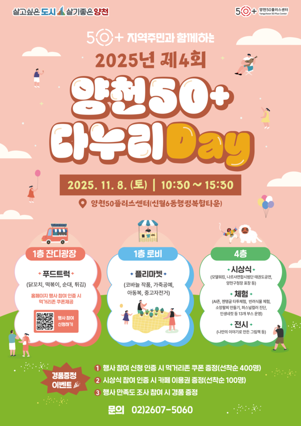 양천50플러스센터는 오는 8일 10시 30분 부터 15시 30분까지, '2025년 제4회 양천50+ 다누리Day'를 개최한다.