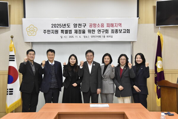 양천구의회는 지난 11월 6일, 양천구의회 1층 회의실에서 '공항소음 피해지역 주민지원 특별법 제정을 위한 연구회' 최종보고회를 개최했다. 본 연구회는 공항 운영 과정에서 발생하는 지속적인 소음 피해 문제를 단순 민원 대응 차원을 넘어 법·제도 개선과 지원 체계 마련의 공공 현안으로 다루기 위해 구성되었다.