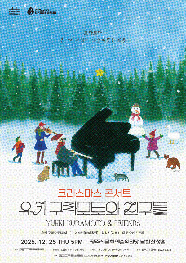 (재)광주시문화재단은 오는 12월 25일 오후 5시, 광주시문화예술의전당 남한산성홀에서 '2025 크리스마스 콘서트-유키 구라모토와 친구들'을 개최한다.