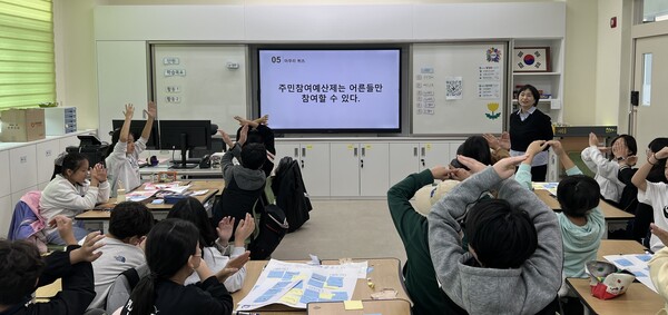 이번 청소년 대상 찾아가는 주민참여예산학교는 성동초등학교를 찾아 5·6학년을 대상으로 수업을 진행했다. 1교시에는 주민참여예산 제도의 전반적인 내용을 교육했으며, 2교시에는 학생들이 직접 지역사회 문제를 발굴하고 해결 방안들을 모색하는 시간을 가졌다.