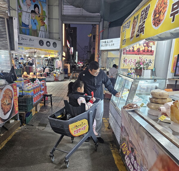 특히 카트 측면에는 시장 홍보 광고판을 부착해 ‘행복한 쇼핑’, ‘친절한 시장’ 등 우수시장 만들기 캠페인 문구와 ‘힘내세요’, ‘부자되세요’ 등 시민 응원 메시지를 담아 시장 홍보와 고객 응원을 동시에 담은 이색 쇼핑카트로 운영된다.