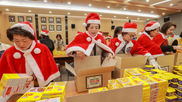 과천시는 지난 14일, 시청 대강당에서 ‘대한적십자봉사회 과천지구협의회’와 함께 '2025년 적십자 산타의 선물 꾸러미 만들기' 행사를 진행했다.