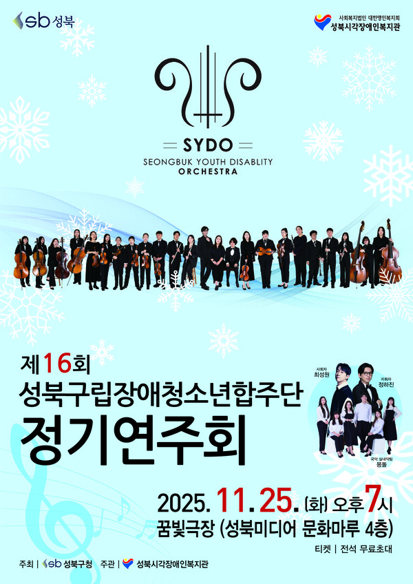 성북구는 오는 25일오후 7시, 꿈빛극장에서 ‘제16회 성북구립장애청소년합주단 정기연주회’를 개최한다. 이번 연주회는 청소년들이 음악을 매개로 서로 소통하고, 숨겨왔던 재능과 열정을 마음껏 펼칠 수 있도록 마련된 자리다.