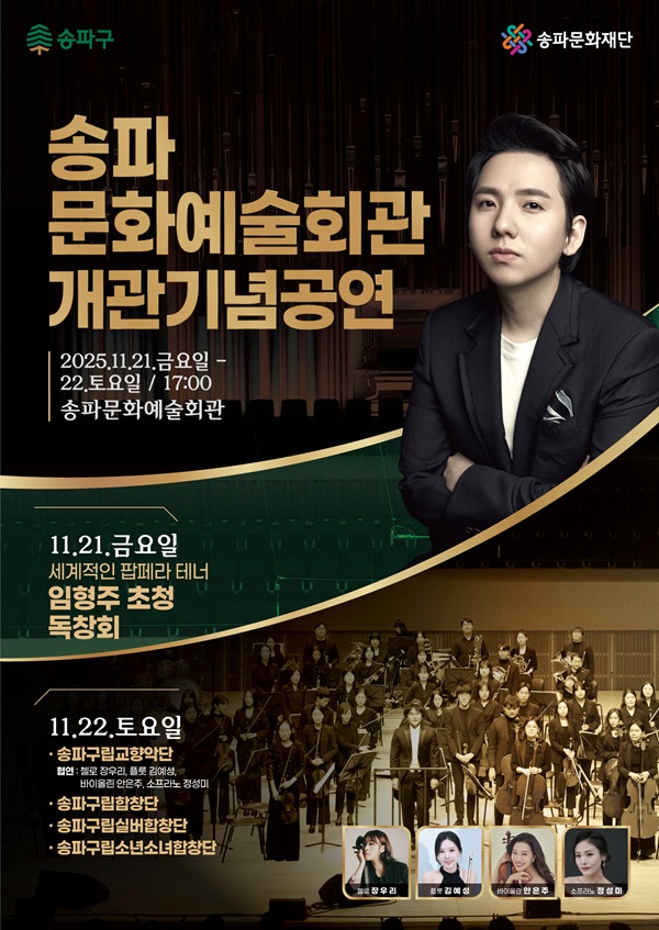 구는 개관을 기념해 특별 공연을 마련했다. 송파구의 새로운 문화 거점을 알리는 이번 공연은 11월 21일, 22일 양일간 17시부터 송파문화예술회관에서 펼쳐진다.