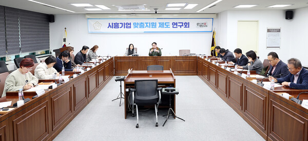 경기 시흥시의회 의원 연구단체 ‘시흥기업 맞춤지원 제도 연구회’가 11월 18일 의회운영위원회 회의장에서 연구 활동 마무리 성과 공유회를 열고, 올해 추진된 연구 활동을 종합 점검하며 향후 시흥기업 지원 정책의 발전 방향을 논의했다.