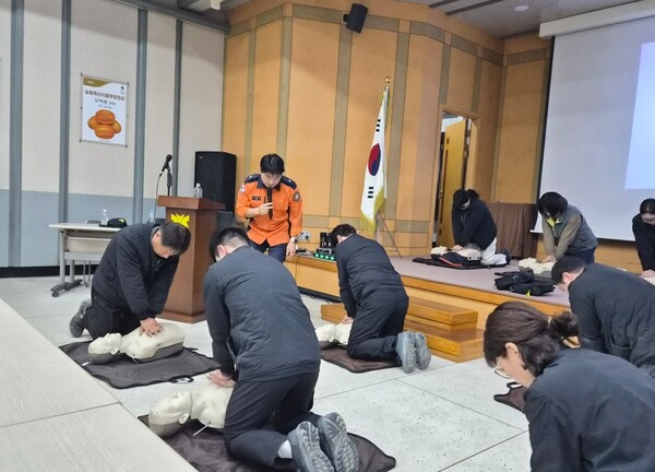 이번 교육은 일상과 직장에서 누구나 응급상황을 마주할 수 있는 만큼, 신속한 대응 능력 강화를 목표로 여주시 보건소에서 직접 사업장을 방문해 진행하였다. 특히 출동 전까지의 골든타임을 지키기 위해 ▲ 심정지 인지 요령 ▲ 119 신고 요령 ▲ 자동심장충격기(AED) 사용법 ▲ 실습용 마네킹을 활용한 가슴압박 및 AED 실습 등 실전 중심 프로그램으로 구성됐다.