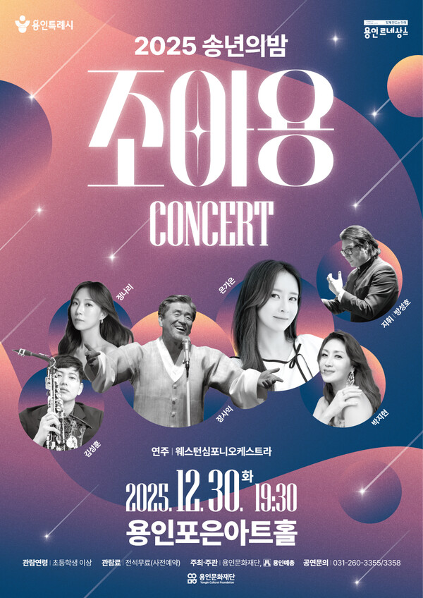 용인문화재단은 오는 12월 30일 용인포은아트홀에서 지역예술인과 함께하는 ‘2025년 송년의 밤 - 조아용 콘서트‘를 용인예총(한국예총 용인지회)과 공동 개최한다.