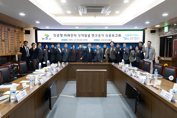 연천군은 지난 8일 군청 상황실에서 빠르게 변화하는 AI 대전환 시기에 대응하고 지역 맞춤형 미래 경쟁력 확보를 위해 추진한 ‘맞춤형 미래전략 정책발굴 연구용역’의 최종보고회를 개최했다.