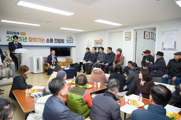 또한 간담회에서 참석자들은 경로당 운영 지원 보조금 상향, 경로당 식사 도우미 활성화, 노인일자리사업의 안정적 추진 및 확대, 아파트 단지 내 노후 가로등 교체, 아파트 진입로 경계석 보수, 아파트 단지 입구 생활쓰레기 거점배출시설 설치 등 실생활과 밀접한 다양한 분야에 대해 건의사항을 전달하고 즉석에서 설명하는 등 적극적인 소통나눔의 시간을 가졌다.
