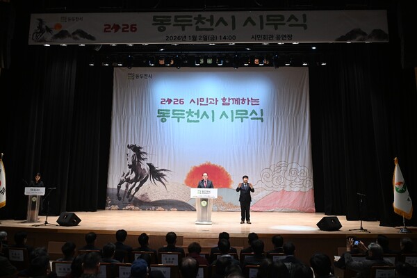 동두천시는 2026년 병오년(丙午年) 새해를 맞아 지난 1월 2일 오후 2시 시민회관 공연장에서 시민과 함께하는 ‘2026년 시무식’을 개최했다.