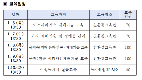 여주시는 1월 6일부터 13일까지 '2026년 새해농업인실용교육'의 일환으로 밭작물 분야 전문교육을 본격 추진한다고 밝혔다.