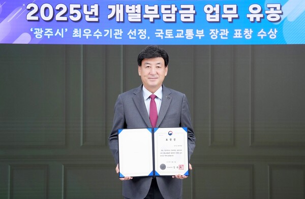 광주시는 2025년도 개발부담금 부과·징수 업무 유공을 인정받아 지난달 31일 국토교통부 장관 표창을 수상했다고 12일 밝혔다.