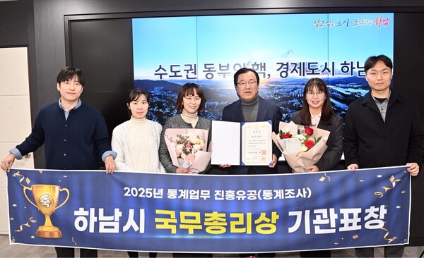 하남시는 국가데이터처가 주관하는 통계조사에서 통계업무 발전에 기여한 공로를 인정받아 지난 1월 9일 통계인재개발원에서 ‘2025년 통계업무 진흥유공’ 부문 국무총리 기관표창을 수상했다고 밝혔다.