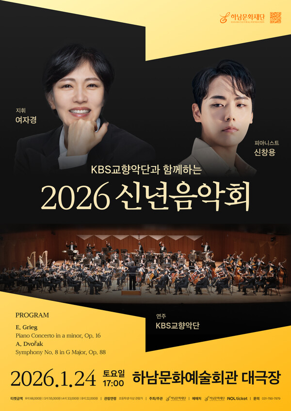 (재)하남문화재단은 대한민국을 대표하는 KBS교향악단과 함께하는 '2026년 신년음악회'가 전석 매진을 기록하며, 오는 2026년 1월 24일 오후 5시, 하남문화예술회관 대극장에서 시민들을 만날 준비를 마쳤다고 밝혔다.