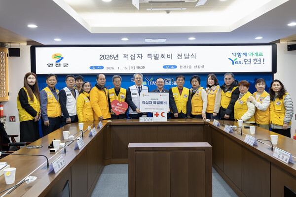 연천군은 지난 15일 군청 상황실에서 연천군수, 대한적십자사 경기도지사 우광호 사무처장, 연천군협의회 금가현 회장 및 회원 등이 참석한 가운데 2026년 적십자 특별회비 전달식을 개최했다.