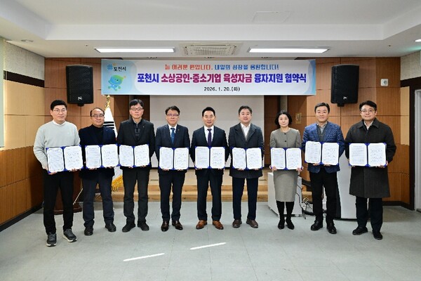 포천시는 지난 20일 포천시근로자종합복지관에서 소상공인과 중소기업의 자금난 해소와 융자지원 사업의 안정적 운영을 위해 관내 금융기관과 육성자금 융자지원 협약을 체결했다.