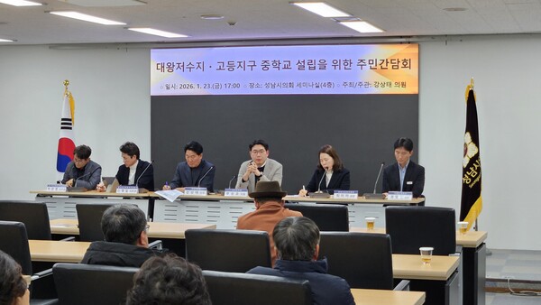 경기도의회 교육행정위원회 문승호 의원(더불어민주당, 성남1)이 지난 1월 23일 성남시의회에서 진행된 ‘대왕저수지·고등지구 중학교 설립 주민 간담회’를 통해 집행부에 고등지구 중학교·대왕저수지 수변공원 설립에 대한 지역 주민들의 의지를 전달하고 신속한 추진을 주문했다.