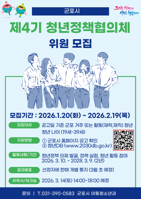 군포시는 제4기 군포시 청년정책협의체 위원을 오는 2월 19일까지 모집한다고 밝혔다.