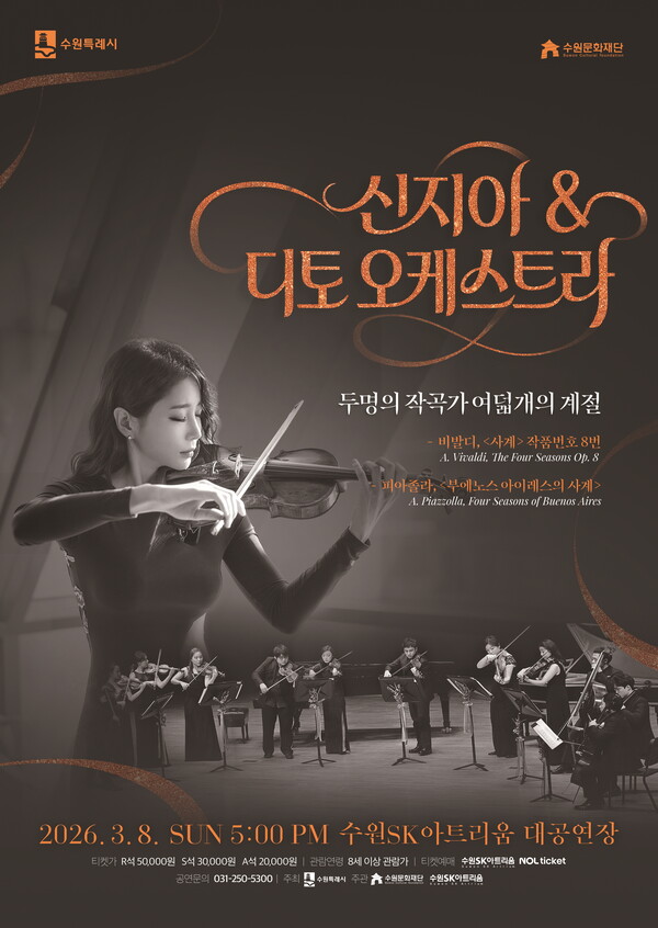 수원문화재단 관계자는 “이번 공연은 유럽의 바로크와 남미의 탱고가 표현하는 사계절을 한자리에서 경험할 수 있는 기회다”며 “계절의 변화를 섬세하게 그려내는 연주에 시민 여러분의 많은 관심을 바란다”고 전했다.