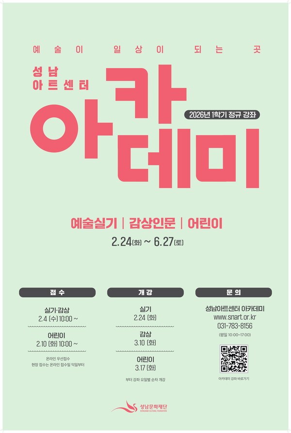 성남아트센터 아카데미가 시민들이 일상에서 예술 창작의 즐거움을 누릴 수 있는 2026년 1학기 정규 강좌를 선보인다.