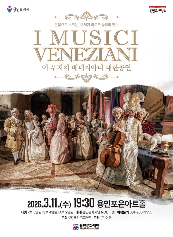 용인문화재단은 오는 3월 11일 용인포은아트홀에서 세계적인 바로크 앙상블 ‘이 무지치 베네치아니(I Musici Veneziani)’의 내한 공연을 개최한다.