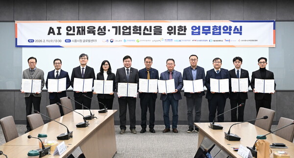 시는 지난 2월 11일 시청 글로벌센터에서 11개 관계기관이 참여하는 ‘인공지능 인재 육성·기업혁신을 위한 업무협약’을 체결했다. 이날 협약식에는 시흥시 부시장을 비롯해 각 협약기관 대표들이 참석했다.
