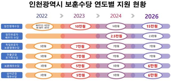 인천시는 민선 8기 출범 이후 인천시에 거주하는 보훈 대상자의 예우 강화를 지속적으로 추진해 왔다.