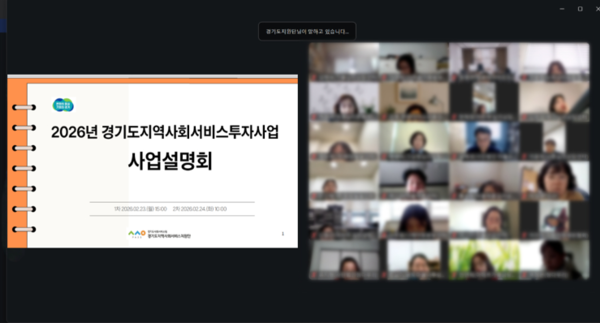 경기도사회서비스원 지역사회서비스지원단은 지난 23일과 24일 도내 지역사회서비스 투자사업 제공기관 관계자 200여 명을 대상으로 '2026년 경기도지역사회서비스투자사업 제공기관 사업설명회'를 온라인으로 진행했다.