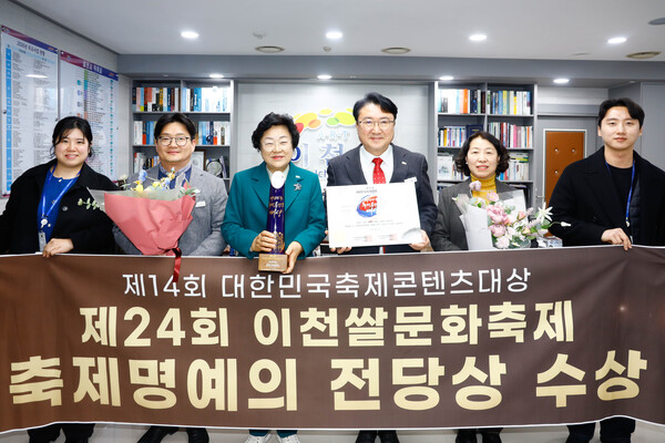 대한민국 대표 농경문화 축제인 ‘이천쌀문화축제’가 지난 24일 서울 전쟁기념관에서 열린 ‘2026 제14회 대한민국축제콘텐츠대상’ 시상식에서 ‘축제 명예의 전당상’을 수상했다.