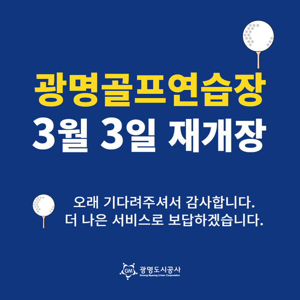 광명도시공사는 약 3개월간의 개보수공사를 마치고 오는 3월 3일 광명골프연습장을 재개장 한다고 밝혔다.