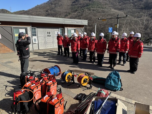 2월 24일에는 초막골생태공원 내 생태교육실에서 산불·산사태·병해충 대응 관련 이론 교육을 실시하고, 이튿날인 25일에는 에덴기도원(속달동 소재) 인근 능선에서 다양한 산림 재난을 현장에서 선제적으로 대응할 수 있는 현장 실습 교육을 병행했다.